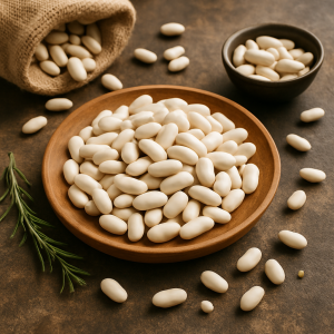 Descriere: Fasolea albă are boabe fine, cu textură cremoasă după fierbere, fiind ideală pentru mâncăruri tradiționale.